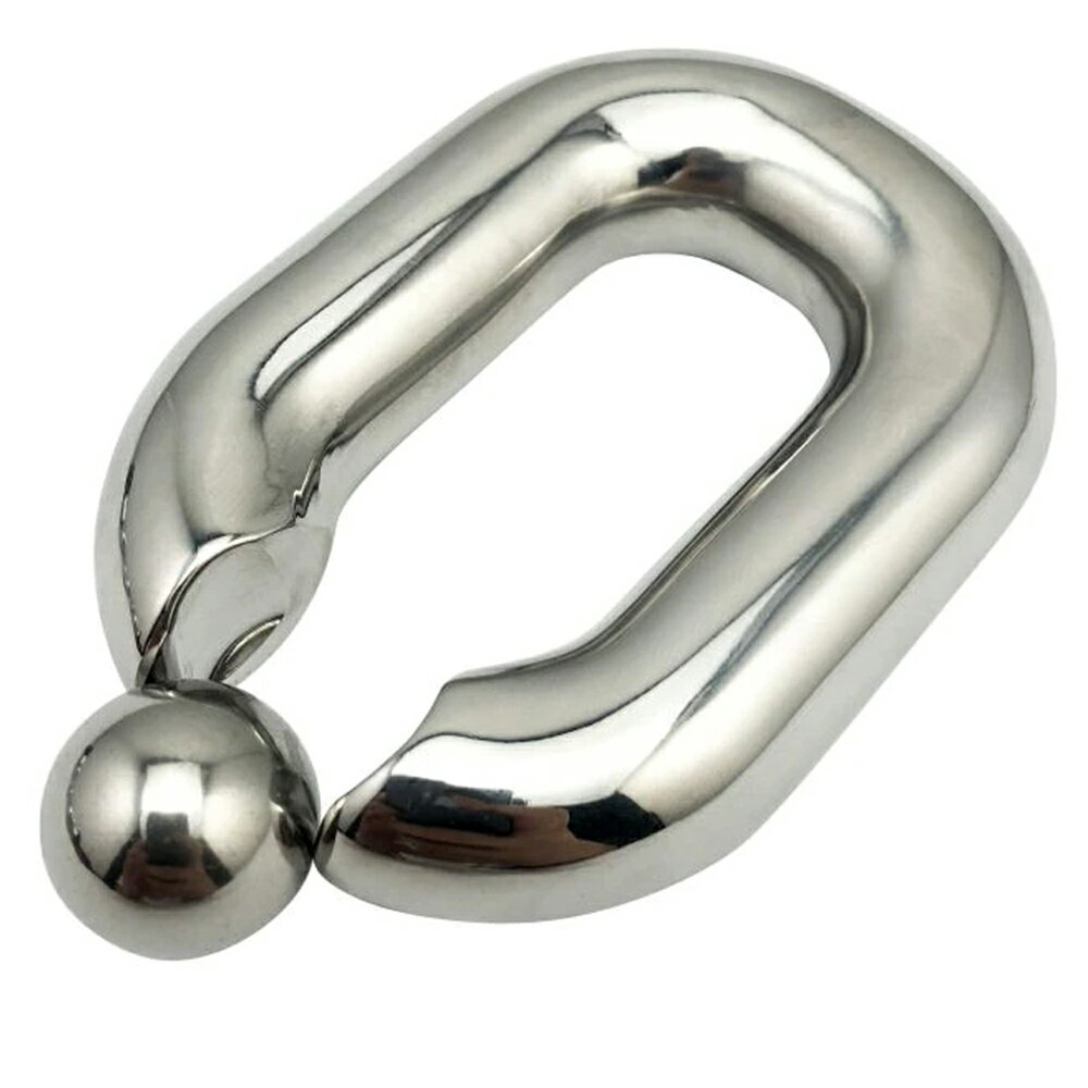 楕円形のCBRタイプのステンレス製ボディピアス。19ミリと太いゲージですが、ワンタッチで装着できるようシャフトを削って調整しているので、男性でも女性でも扱いやすい。素材も安心のステンレスで水に強く、つけっ放しでも劣化しにくいのもうれしい。もちろん耳用ではないですが、重さもあるので耳につけて錘のウエイトに使っても面白い。玉が外しやすいので、着脱も便利。ボールサイズが合えば金の玉に変えても面白い。大人男子におススメのマニアックなボディピアスです。 スペック19mm内径:25mmx45mmボールサイズ(直径):20mm素材ステンレススティール備考表示は1ヶの価格です。写真はイメージです。実際の商品とは多少異なる場合がございます。ハンドメイドの為多少サイズは異なります。
