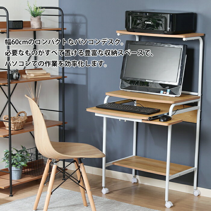 [冬のpt5倍キャンペーン!!12/4 19:59まで] パソコンデスク シンプル 幅60 ワークデスク キャスター付き コンパクト