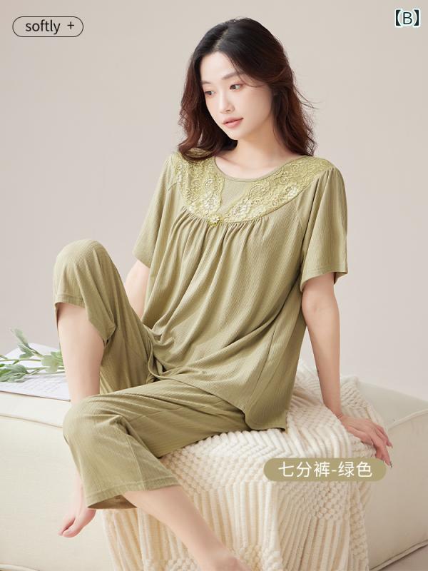 半袖 半ズボン パジャマ モダール レディース 夏 半袖 クロップドパンツ 胸 パッド 付き 中年 ママ パジャマ 冷感 ホームウェア 春秋