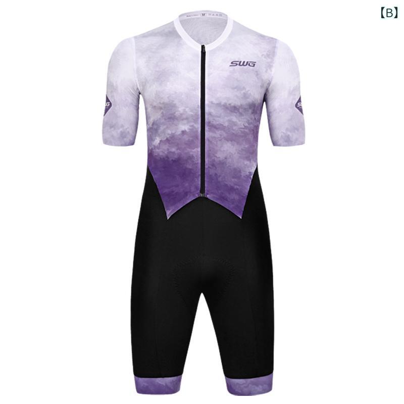 サイクリング ウェア スーツ SWG Mingsheng 夏用 半袖 サイクリング ジャンプスーツ メンズ プロ タイト 速乾 吸汗 ダブルアロー クッション スーツ