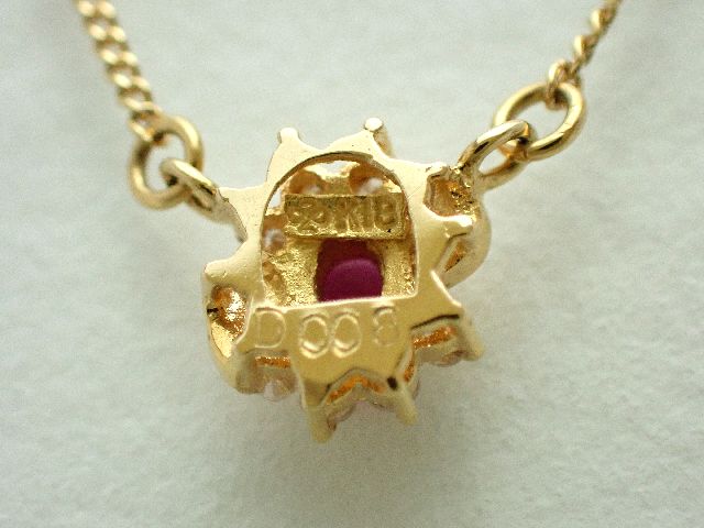 K18 ルビープチネックレス/お花モチーフ/ルビー/ダイヤモンド0.08ct/ジュエリーマキ/2.2g【質屋出店】【送料無料】【中古】