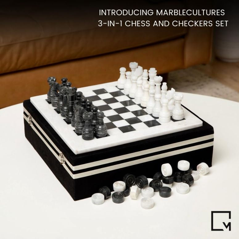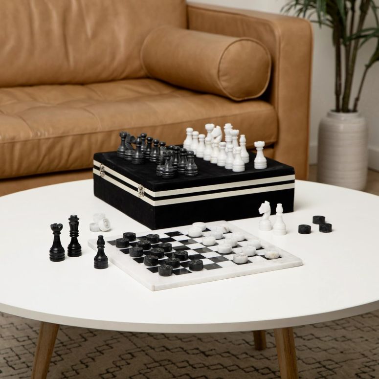 チェスセット Marble Chess and Checkers Set ? Luxury Tabletop Game and Coffee Table Decor ? Elegant 3-in-1 Marble Game for Room Decor, Modern Home Accents, and Functional D?cor (Black and White) 【並行輸入品】