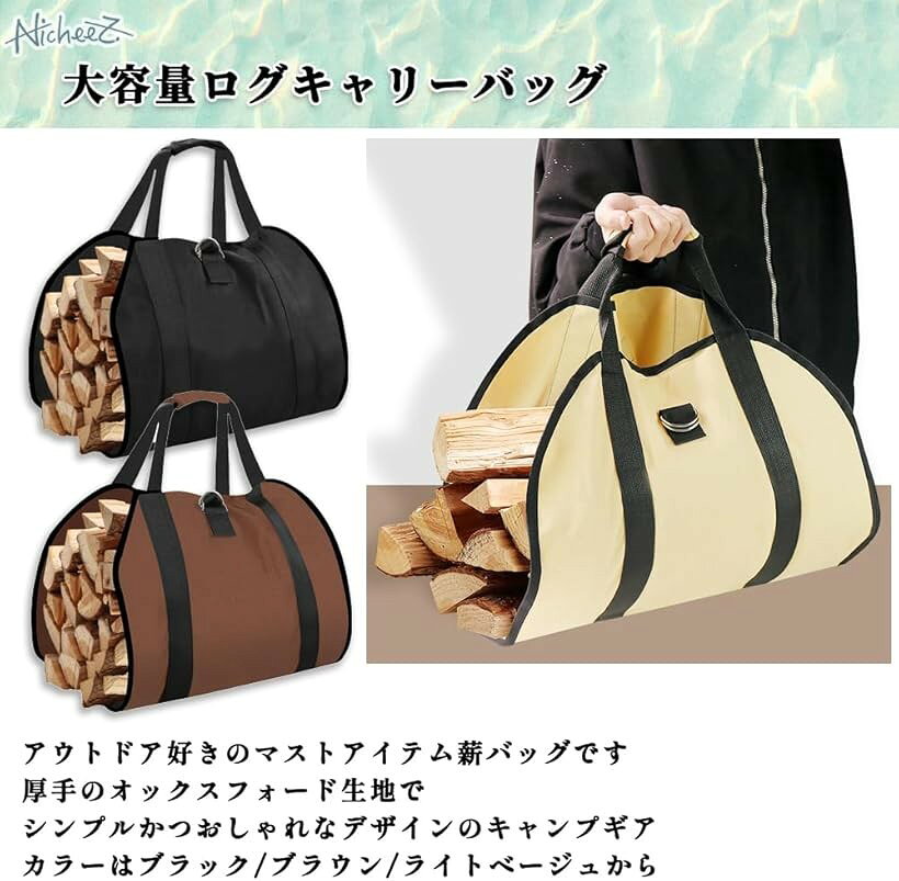 「大容量ログキャリーバッグ」アウトドア好きのマストアイテム、薪バッグです。厚手のオックスフォード生地でシンプルかつおしゃれなデザインのキャンプギア。カラーはブラック/ブラウン/ライトベージュからお選びいただけます。「実用性なデザイン」サッと広げて薪を包むだけのラクラク一枚布仕立て。ダブルDリング付きのベルトで荷物をしっかり固定できます。ハンドルは持ちやすいカバー付き。「薪の残りが分かりやすい」サイドから薪の残量が一目でわかるのが便利。段ボールなどに入れて積んでいる時にありがちな、残量が分かりにくく、積みにくい、運びにくいと思っている方にオススメです。「商品内容」大容量ログキャリーバッグ 材質:オックスフォード カラー:ブラック/ブラウン/ライトベージュ サイズ:横/約48cm 縦/約87cm 重量:約200g商標登録第6600663号)※ 他ネットショップでも併売しているため、ご注文後に在庫切れとなる場合があります。予めご了承ください。※ 品薄または希少等の理由により、参考価格よりも高い価格で販売されている場合があります。ご注文の際には必ず販売価格をご確認ください。※ 沖縄県、離島または一部地域の場合、別途送料の負担をお願いする場合があります。予めご了承ください。※ お使いのモニタにより写真の色が実際の商品の色と異なる場合や、イメージに差異が生じることがあります。予めご了承ください。※ 商品の詳細(カラー・数量・サイズ 等)については、ページ内の商品説明をご確認のうえ、ご注文ください。※ モバイル版・スマホ版ページでは、お使いの端末によっては一部の情報が表示されないことがあります。すべての記載情報をご確認するには、PC版ページをご覧ください。