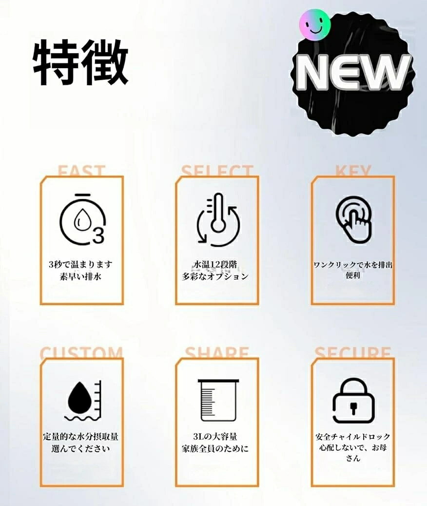 【2024新登場】電気ケトル 3L ウォーターサーバー 家庭用卓上型 コンパ 12段階温度調整 3秒瞬間熱湯 温水 冷水 節電対策 キッチン オフィスに最適