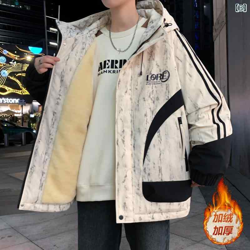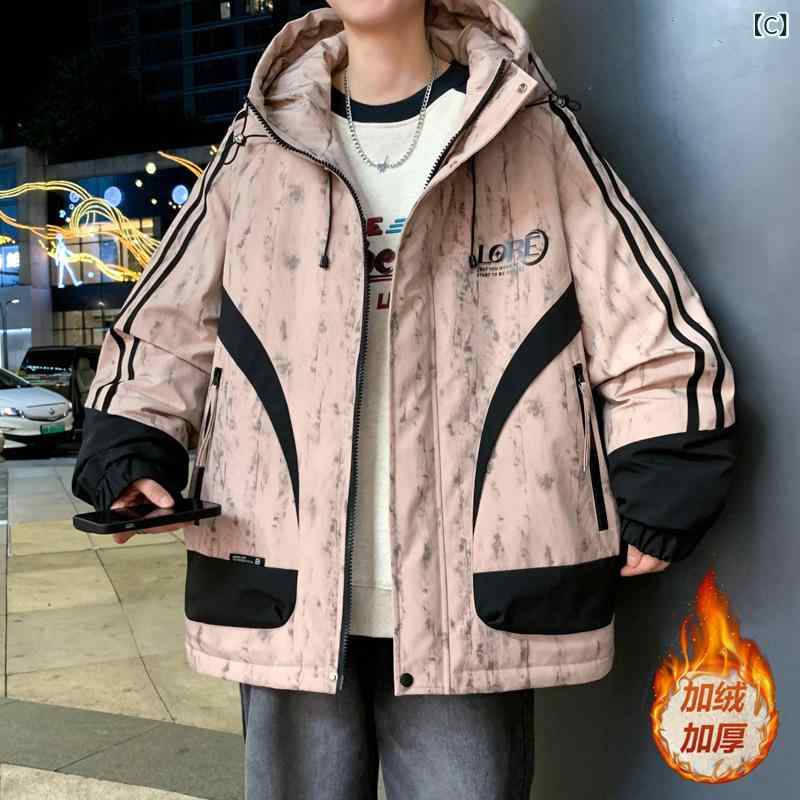 ジャケット メンズ フード付き 裏起毛 マウンテンパーカー 防風 保温 ワークウェア カジュアル ブルゾン アウター ポリエステル製 ゆったり ルーズシルエット 学生 通学 タウンユース ミドル丈 秋冬