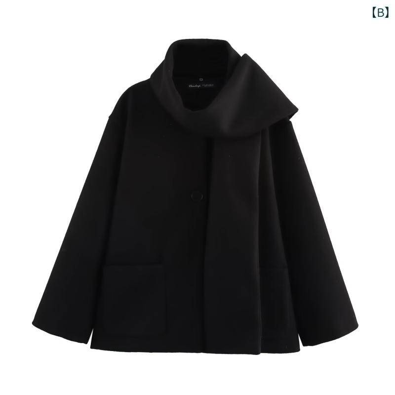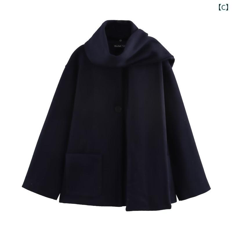 アウター レディース 秋冬 スカーフ襟 メルトン コート ウール調 ストリート カジュアル きれいめ 通勤 上品 シングルボタン 無地 切り替え レギュラーフィット ミドル丈