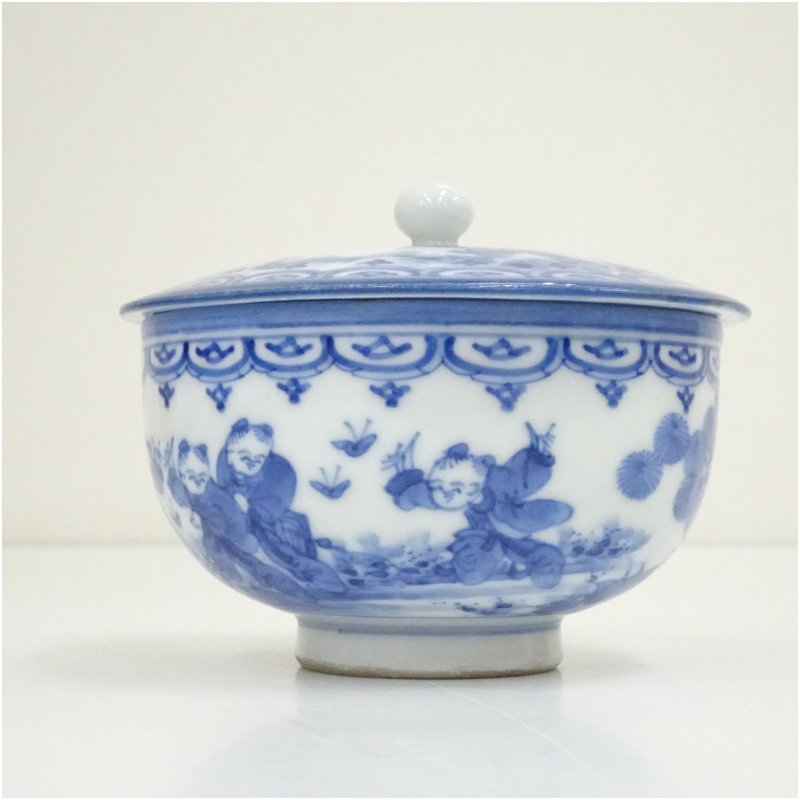 【茶道具・着物】送料無料三河内焼 平戸雅松造 染付七人唐子図煎茶碗5客