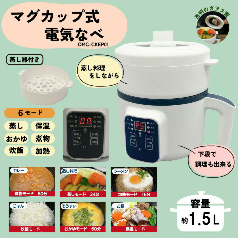 【選ぶ景品】 電気なべ 1.5L 電気鍋 蒸し器 蓋付き 1~2人用 炊飯 2合 Omni マグカップ式電気なべ OMC-CKEP01 電気調理鍋 電気なべ 電気グリル鍋 一人用鍋 一人用電気鍋 電気蒸し機 電気煮物鍋 電気ラーメン鍋 カレー ごはん 一人鍋 お一人様鍋 電気 ひとり鍋 一人暮らし