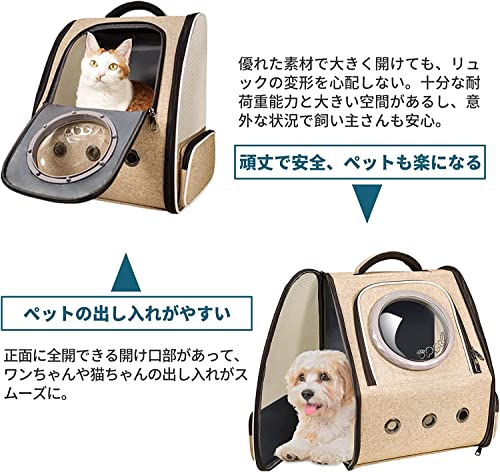 バックパック・カーキ 35L x 28W x 41H cm KQ2・・Color:カーキ・??大容量!お出かけ便利・収納可能ドライブ/キャンピング/散歩/通院/旅行/災害避難などのお出かける際、持ち運びにも便利です。または折りたたみ式なので、ツールなしで簡単に収納します。使わない時にスペースを取らずに収納可能です。おすすめペット:猫(小型・2匹可能)・小型犬・うさぎ・小動物など。耐荷重:8kgの猫と6kgの犬でも適用。・??通気性がよいメッシュ窓をいくつ備えており、ペットに新鮮な空気を与え、窮屈な感じを与えません。メッシュ窓は高品質の材料を使用して作られるので、引っ掻き傷に強い対応できます。ペットは飼主さんの顔がいつでも見える安心、不安を解消します! そのほか、透明カバーとメッシュ換気窓を備えており、いつでも切り替えることができます。・??優れた安全性全てのファスナーがロック式のダブルファスナーになっておりますので、少しヤンチャな可愛いペットも安心です。底部にもふわふわな素材、PEボードで作れた滑り止めマットが付き、しっかりして型崩れしにくい、安定性が良い 最新型 猫 犬 キャリー リュック ペットキャリー リュック バッグ