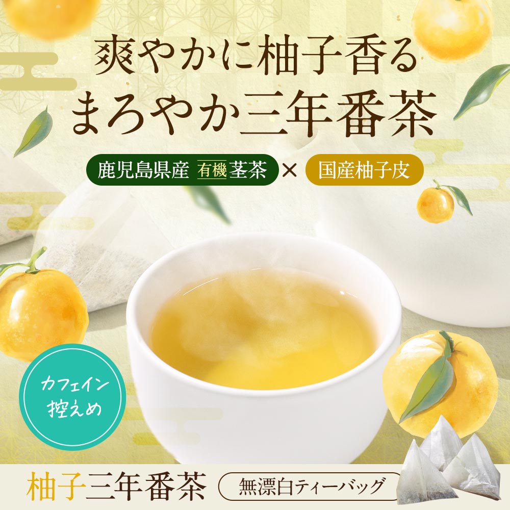 【全品クーポンで5%OFF】 柚子 三年番茶 90g(3g×30包) 有機 三年番茶 使用 ゆず ティーバッグ 鹿児島 低カフェイン お茶 国産 送料無料 レビュー特典