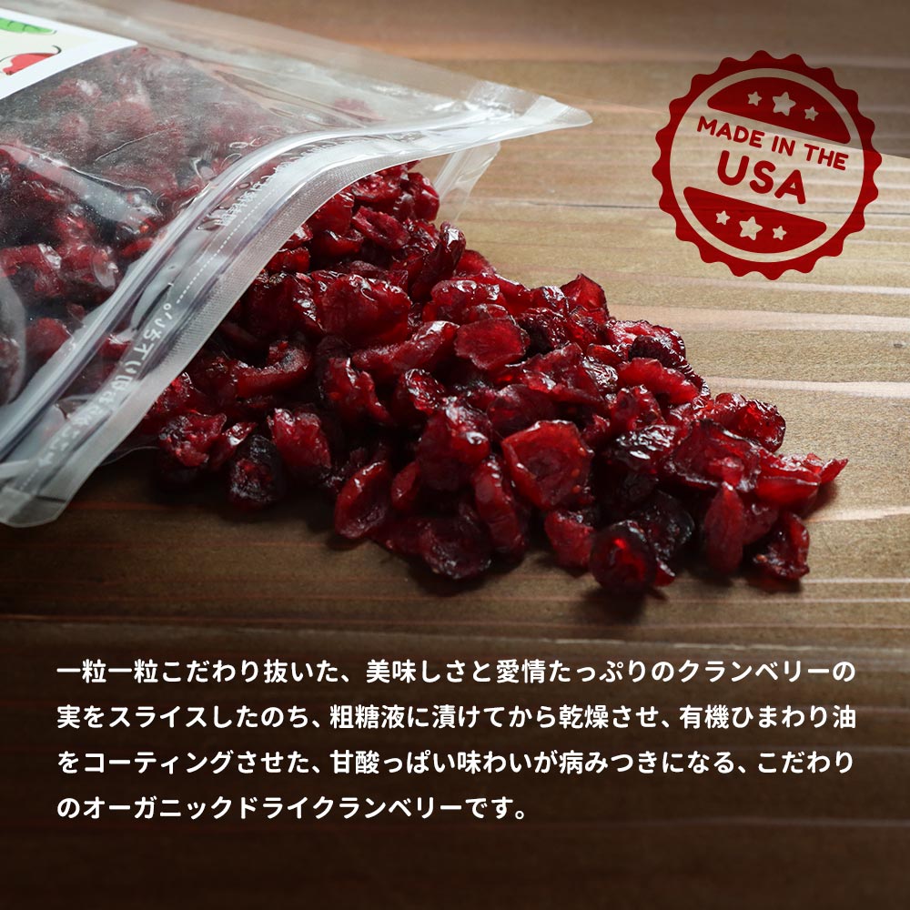 【LINE登録で5%OFFクーポン】 有機クランベリー 200g クランベリー オーガニック ドライフルーツ 有機JAS認証 美容 ポリフェノール 香料・保存料不使用 クランベリージュース クランベリーソース パン作り 美容 健康 おすすめ 人気 アメリカ産 送料無料