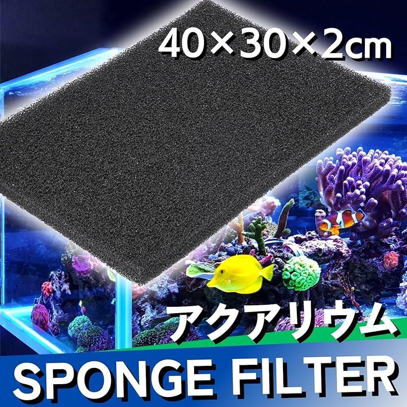 水槽 スポンジフィルター 粗め 厚め 濾過材 アクアリウム 30x40x2cm (ブラック, 30x40x2cm(2枚セット))