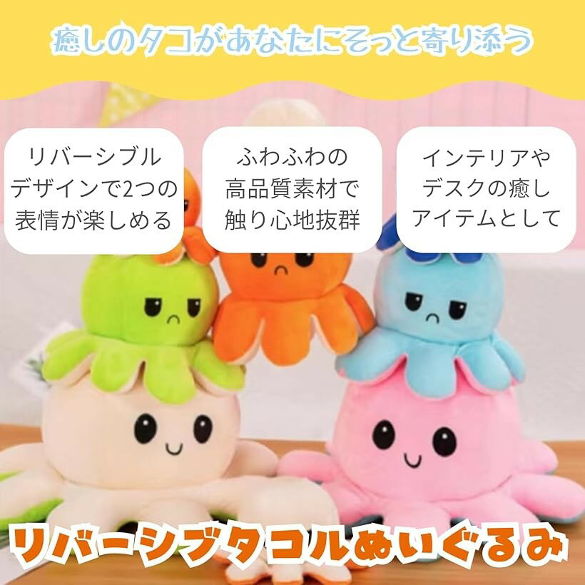 バリエーションコード : 2buhw2pt31商品コード2buhwt1khw商品名ぬいぐるみ タコ たこ 可愛いぬいぐるみ 小さい かわいいブランドAll Trustカラーライトブルーからピンク「リバーシブルデザインで2つの表情が楽しめる」くるっと裏返すだけで表情やカラーが変わる楽しいぬいぐるみ。ふわふわの触り心地とキュートなデザインで、お子様から大人まで幅広い年代に愛されるアイテムです。「ふわふわの高品質素材で触り心地抜群」柔らかいぬいぐるみ素材で、抱きしめたくなる心地よさ。感情を表現するコミュニケーションツールとしても使え、プレゼントにも最適。デスクやベッドサイドに置いて、インテリアのアクセントとしても活躍します。「インテリアやデスクの癒しアイテムとして」ふわふわのぬいぐるみが、リラックス空間を演出。オフィスや勉強机に置けば、ストレス解消にも。「商品内容」サイズ 20 x 20 x 11 cm※ 他ネットショップでも併売しているため、ご注文後に在庫切れとなる場合があります。予めご了承ください。※ 品薄または希少等の理由により、参考価格よりも高い価格で販売されている場合があります。ご注文の際には必ず販売価格をご確認ください。※ 沖縄県、離島または一部地域の場合、別途送料の負担をお願いする場合があります。予めご了承ください。※ お使いのモニタにより写真の色が実際の商品の色と異なる場合や、イメージに差異が生じることがあります。予めご了承ください。※ 商品の詳細(カラー・数量・サイズ 等)については、ページ内の商品説明をご確認のうえ、ご注文ください。※ モバイル版・スマホ版ページでは、お使いの端末によっては一部の情報が表示されないことがあります。すべての記載情報をご確認するには、PC版ページをご覧ください。