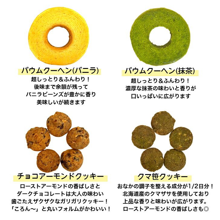 商品情報フルーツパウンドケーキ・名称:フルーツパウンドケーキ・原材料名:フルーツコンフィ(国内製造)、ココナッツオイル、卵、小麦粉、砂糖、アーモンドパウダー、洋酒/膨張剤(ベーキングパウダー)、(一部に卵、小麦、アーモンド、オレンジ、りんごを含む)・内容量:1個 ・賞味期限:製造日より3カ月・保存方法:直射日光、高温多湿の場所は避けてください。チョコレートパウンドケーキ・名称:チョコレートパウンドケーキ・原材料名:卵(国産)、ココナッツオイル、砂糖、チョコレート、小麦粉、アーモンドパウダー、カカオパウダー、オレンジピール/膨張剤(ベーキングパウダー)、(一部に卵、小麦、乳成分、アーモンド、大豆、オレンジを含む)・内容量:1個 ・賞味期限:製造日より3カ月・保存方法:直射日光、高温多湿の場所は避けてください。コーヒーパウンドケーキアチェガヨ(スマトラ島)のコーヒー豆使用・名称:コーヒーパウンドケーキ・原材料名:卵(国産)、ココナッツオイル、小麦粉、砂糖、コーヒー豆、アーモンドパウダー、洋酒、カカオニブ/膨張剤(ベーキングパウダー)、(一部に卵、小麦、アーモンドを含む)・内容量:1個・賞味期限:製造日より3カ月・保存方法:直射日光、高温多湿の場所は避けてください。クマザサパウンドケーキ・名称:クマザサパウンドケーキ・原材料名:ココナッツオイル(フィリピン産)、卵、小麦粉、砂糖、クマザサ粉末、アーモンドパウダー、洋酒、塩/膨張剤(ベーキングパウダー)、(一部に卵、小麦、アーモンドを含む)・内容量:1個・賞味期限:製造日より3カ月・保存方法:直射日光、高温多湿の場所は避けてください。チョコアーモンドクッキー・名称:チョコアーモンドクッキー・原材料名:小麦粉(国内製造)、チョコレート、卵、ココナッツオイル、砂糖、アーモンド、塩/香料(バニラビーンズ〈マダガスカル産〉 )、膨張剤(ベーキングパウダー)、(一部に卵、小麦、乳成分、アーモンド、大豆を含む)・内容量:5個・賞味期限:製造日より3カ月・保存方法:直射日光、高温多湿の場所は避けてください。クマザサクッキー・名称:クマザサクッキー・原材料名:ココナッツオイル(フィリピン産)、小麦粉、卵、アーモンド、砂糖、でん粉、クマザサ粉末、塩/膨張剤(ベーキングパウダー)、(一部に卵、小麦、アーモンド、含む)・内容量:5個・賞味期限:製造日より3カ月・保存方法:直射日光、高温多湿の場所は避けてください。バウムクーヘン(抹茶)・名称:バウムクーヘン(抹茶)・原材料名:液卵(国内製造)、砂糖、小麦粉、乳等を主原料とする食品、ココナッツオイル、ショートニング、抹茶、食用乳化油脂/乳化剤、膨張剤、香料、PH調整剤(一部に卵、小麦、乳成分、大豆を含む)・内容量:1個 ・賞味期限:製造日より3カ月・保存方法:直射日光、高温多湿の場所は避けてください。