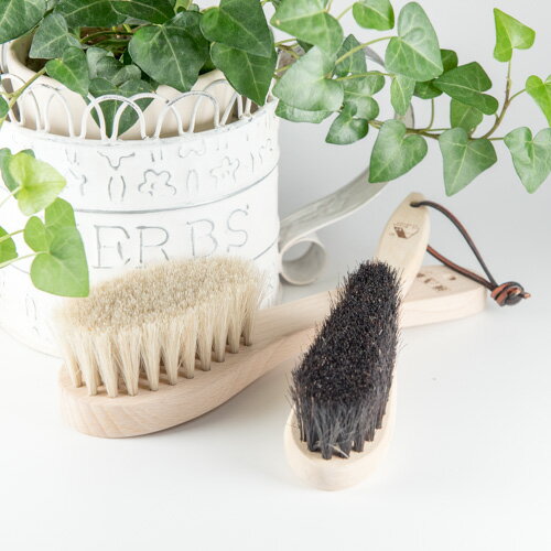 『コーディネートブラシセット』ブラシ 洋服ブラシ 帽子ブラシ セット 天然木 馬毛 浅草 アートブラシ 商品紹介 洋服ブラシと帽子ブラシのセット 洋服ブラシ 浅草アートブラシのベーシックな洋服ブラシです。 一般的な洋服ブラシと違い、毛先が密集するように植毛しています。 これにより衣類に当たる面積が広くなり、衣類に付いたホコリなどが払いやすくなります。 帽子ブラシ いろいろな形状、素材の帽子にお使い頂ける専用「帽子ブラシ」 帽子は形や大きさもバラエティーに富み、また頭に被るため、埃や汚れも非常につきやすいアイテムでもあります。 アートブラシの帽子ブラシは毛先を山型に特殊カットすることで、プリム(つば)のそり返りや、 天(頭頂部)の凹凸や折り目などにぴったりフィットし、しなやかでコシのある天然毛の黒馬毛がきれいに払い落とします。 大切な帽子の日頃のお手入れの為に良質の馬尾毛100%を使用しているので、 力を入れずに優しくブラッシングするだけで、繊維の奥に入り込んだチリ、ホコリを素早く払い落とします。 サイズ・重量 洋服ブラシ本体サイズ:(約)/全長21×幅5.5×高さ5cm重量:(約)80g帽子ブラシ本体サイズ:(約)全長20.0×幅4.0×厚み4.0cm重量:(約)50g 商品説明 セット内容 アートブラシの洋服ブラシ・帽子ブラシ材質洋服ブラシ:持ち手=天然木、毛=馬毛帽子ブラシ:持ち手=天然木、毛=馬毛製造国:日本メーカー名:有限会社アートブラシ 広告文責 (有)パルス 048-551-7965 『通常土日祝日を除く1週間以内に出荷の予定ですが 欠品やメーカー終了の可能性もあり、その場合は 別途メールにてご連絡いたします』『コーディネートブラシセット』ブラシ 洋服ブラシ 帽子ブラシ セット 天然木 馬毛 浅草 アートブラシ