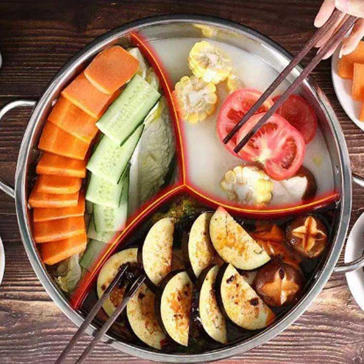 3食 三食鍋 32cm ステンレス 仕切り鍋 しゃぶしゃぶ鍋 直火対応 IH対応 三食鍋 両手鍋 味分け 仕切り鍋 火鍋 鍋 三味鍋 卓上鍋 家庭 3色鍋 三穴鍋 鍋パーティ 中華鍋
