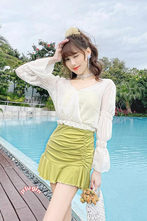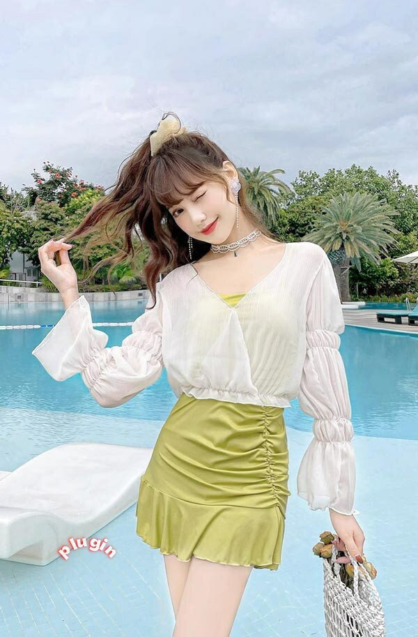 ワンピース水着 服みたいな 水着 レディース 2点セット 長袖 フリル 透け感あり ワイヤーなし パッド付 無地 着痩せ 体型カバー ぽっちゃり シンプル セクシー 写真映え 撮影用 海 夏 サマー プール リゾート かわいい 旅行 温泉 大人 女性用 ジュニア 学生 ja348m4m4m4