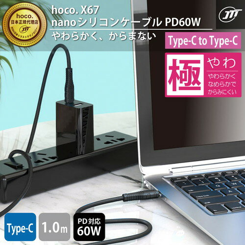 【5個セット】 日本トラストテクノロジー JTT hoco X67 nanoシリコンケーブル PD60W Type-C to Type-C ホワイト X67-NANOSTT-WHX5