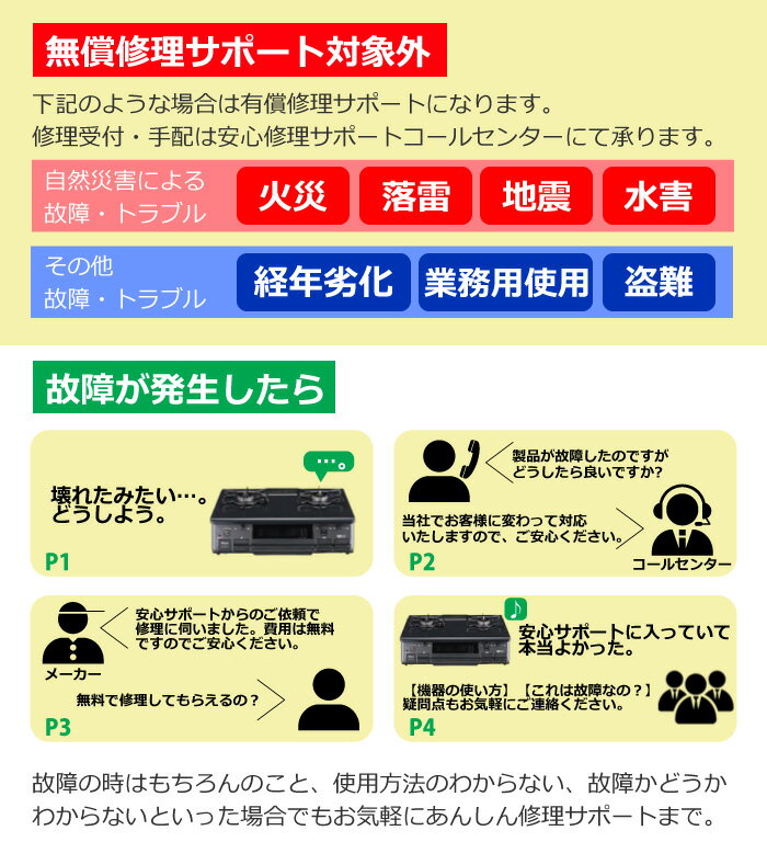 ◆修理代(部品代・出張費を含む)無料! 無償修理規定内の故障であれば、お客様の自己負担は一切ありません。