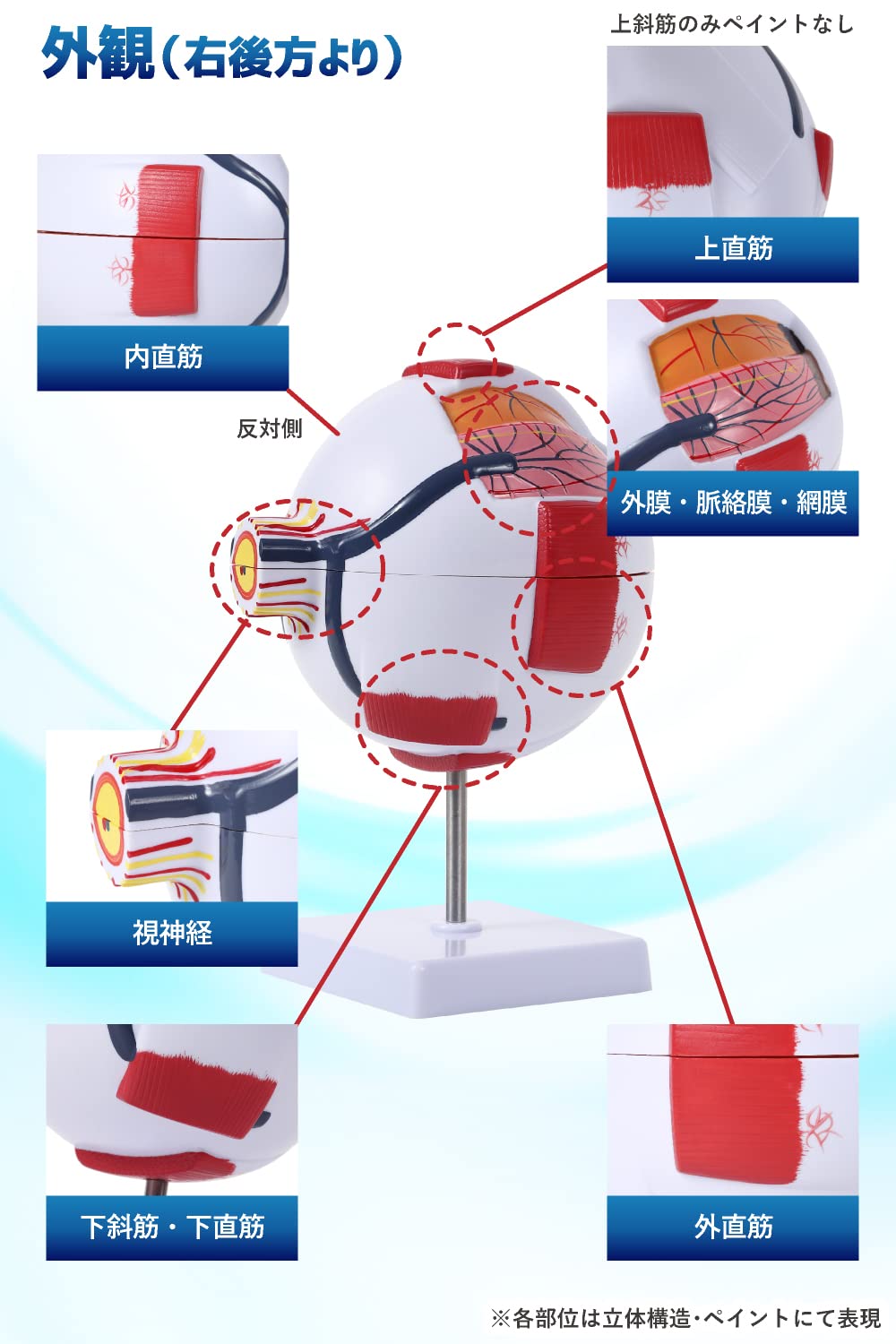 ■6倍サイズの分解できる眼球模型のため角膜や虹彩、水晶体、硝子体などを実際に見たり、手で触れることで立体的に学ぶことができます。