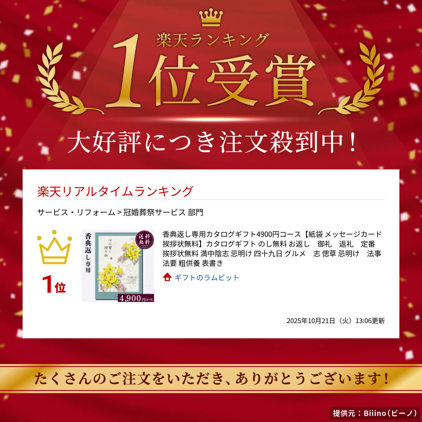 香典返し専用カタログギフト4900円コース【紙袋 メッセージカード 挨拶状無料】カタログギフト のし無料 お返し 御礼 返礼 定番 挨拶状無料 満中陰志 忌明け 四十九日 グルメ 志 偲草 忌明け 法事 法要 粗供養 表書き