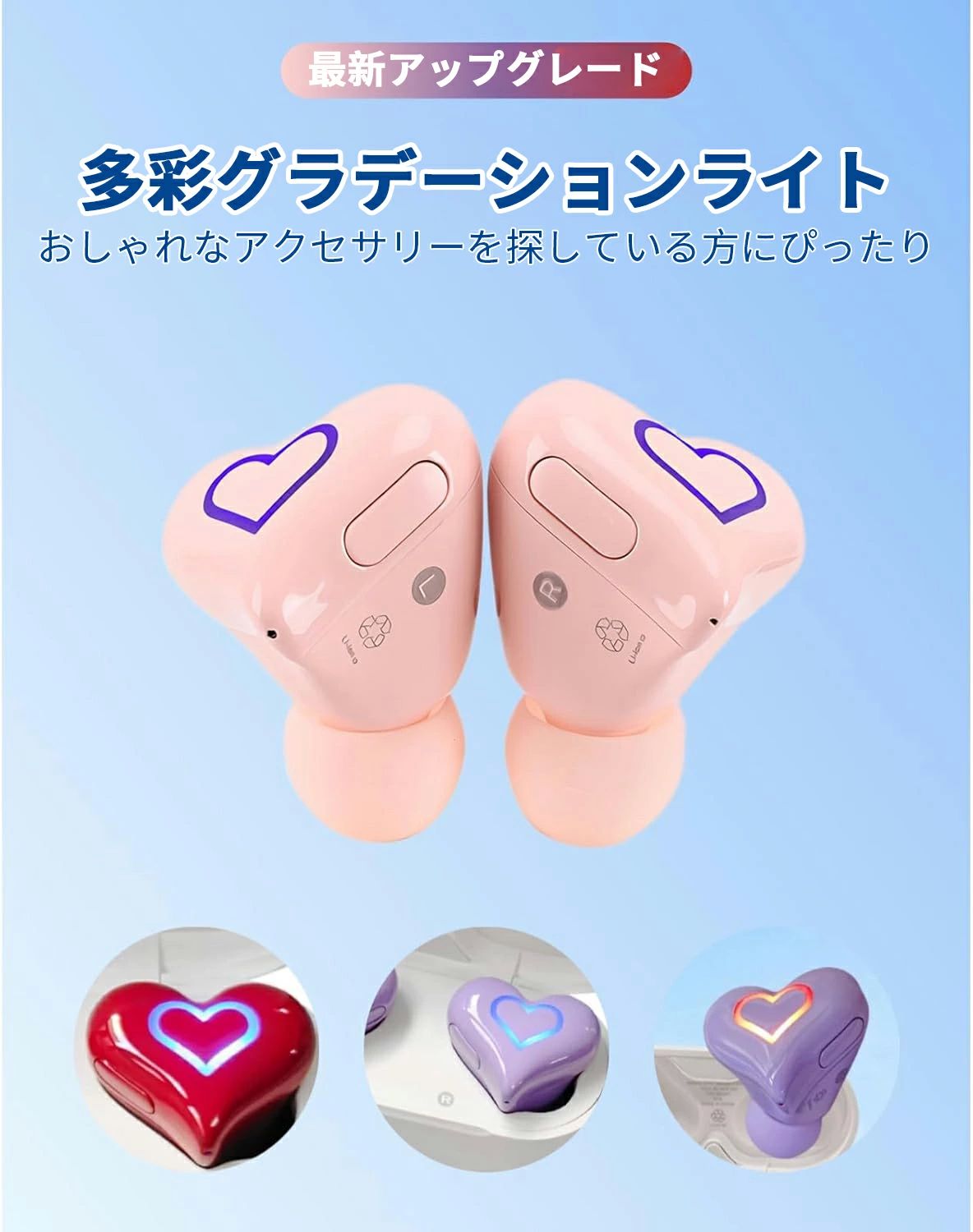 ゲ 低遅延 小型 片耳通話可能 ハンズフリー通話 マイク付き 長時間再生 重低音 Bluetooth5.3 独立型 ハート形状 ブルートゥース
