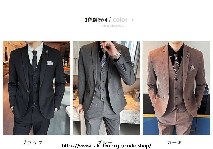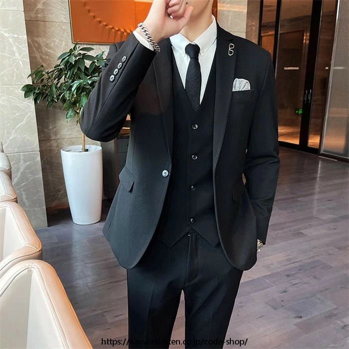 スリーピース タキシード スーツ メンズ 紳士服 礼服 メンズスーツ フォーマル ビジネス リクルートスーツ 通勤 オフィス 就職活動 面接 入社 カジュアル 上品 結婚式 二次会 卒業式 入学式 スリムスーツ 30代40代50代 大人 大きいサイズ パンツスーツ 無地 カーキ 黒 グレー