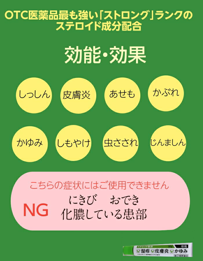 ■相談すること 1.次の人は使用前に医師,薬剤師又は登録販売者に相談してください。 (1)医師の治療を受けている人 (2)妊婦又は妊娠していると思われる人 (3)薬などによりアレルギー症状を起こしたことがある人 (4)患部が広範囲の人 (5)湿潤やただれのひどい人 2.使用後,次の症状があらわれた場合は副作用の可能性がありますので,直ちに使用を中止し,この説明文書を持って医師,薬剤師又は登録販売者に相談してください。 [関係部位:症状] 皮膚:発疹・発赤,かゆみ 皮膚(患部):みずむし・たむし等の白癬,にきび,化膿症状,持続的な刺激感,白くなる 3.5〜6日間使用しても症状がよくならない場合は使用を中止し,この説明文書を持って医師,薬剤師又は登録販売者に相談してください。 有効成分・分量 (100g中) ベタメタゾン吉草酸エステル 0.12g 添加物 流動パラフィン ミリスチン酸イソプロピル 白色ワセリン 効能・効果 湿疹,皮膚炎,あせも,かぶれ,かゆみ,しもやけ,虫さされ,じんましん 用法・用量 1日1〜数回塗布 用法に関する注意 (1)定められた用法・用量をお守りください。 (2)小児に使用させる場合には,保護者の指導監督のもとに使用させてください。 (3)目に入らないように注意してください。万一,目に入った場合には,すぐに水又はぬるま湯で洗ってください。なお,症状が重い場合には,眼科医の診療を受けてください。 (4)本剤のついた手で,目など粘膜にふれないでください。 (5)外用にのみ使用してください。 (6)本剤を塗布後,その部位をラップフィルム等の通気性の悪いもので覆わないでください。 (7)化粧下,ひげそり後などに使用しないでください。 保管及び取り扱い上の注意 (1)直射日光の当たらない涼しい所に密栓して保管してください。 (2)小児の手の届かない所に保管してください。 (3)他の容器に入れ替えないでください。(誤用の原因になったり品質が変わります。) (4)使用期限を過ぎた製品は使用しないでください。なお,使用期限内であっても,開封後はなるべく早く使用してください。 その他 製造販売元 新生薬品株式会社 〒930-0364 富山県中新川郡上市町横越16番1 消費者相談窓口 (076)472-0361 9:00〜17:00(土,日,祝日を除く) 販売元住所等 テイカ製薬株式会社 富山市荒川一丁目3番27号 原産国 日本 文責 株式会社さくら医薬品 電話 026-299-7530 リスク区分 リスク区分 指定第二類医薬品 医薬品の使用期限 使用期限 使用期限まで半年以上あるものをお送りします。