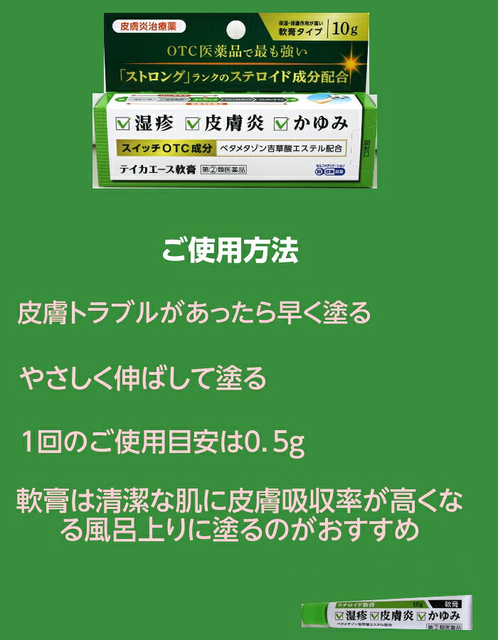 【指定第2類医薬品】テイカエース軟膏 10g 湿疹 皮膚炎 かゆみ スイッチOTC成分 あせも かぶれ 虫刺され じんましん 送料無料