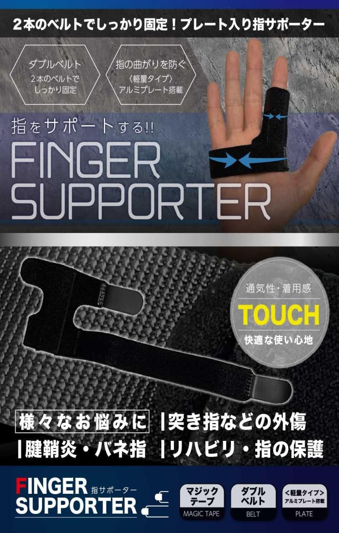 ZesMark 指 サポーター【理学療法士推薦】 固定プレート入り 全指対応 左右対応 フィンガーラップ (ブラック/二点固定タイプ)
