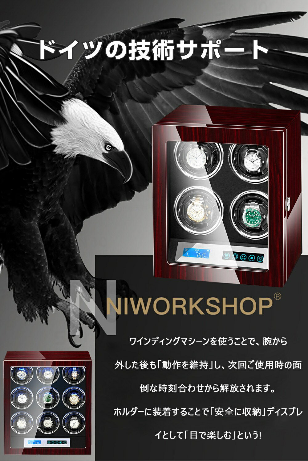 3本/4本/9本巻 上品の選択 腕時計 自動巻 ケース 自動巻き上げ機 ワインディングマシーン ワインディング 時計ケース 木製 腕時計 収納ケース 高級ウォッチボックス プレゼント インテリア コレクション 引っ越しお祝い 一人暮らし 節電 静音設計 誕生日 ギフト クリスマス