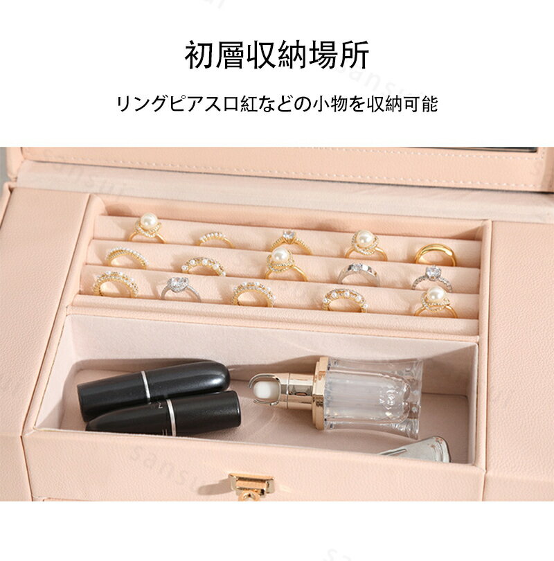 ジュエリーボックス 大容量 6段 鏡付き アクセサリーボックス ジュエリー収納 ジュエリーケース アクセサリーケース ネックレスケース 5段引き出し 宝石箱 レディース小物入れ 幅27×奥行17×高さ28cm ホワイト