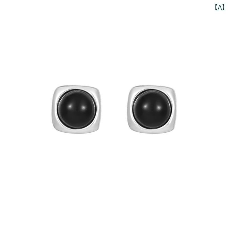 ピアス レディース S925 シルバー トレンド クール ジオメトリック 幾何学 オニキス 上品 小ぶり 華奢 シンプル 通勤 オフィス 春夏 プラチナカラー