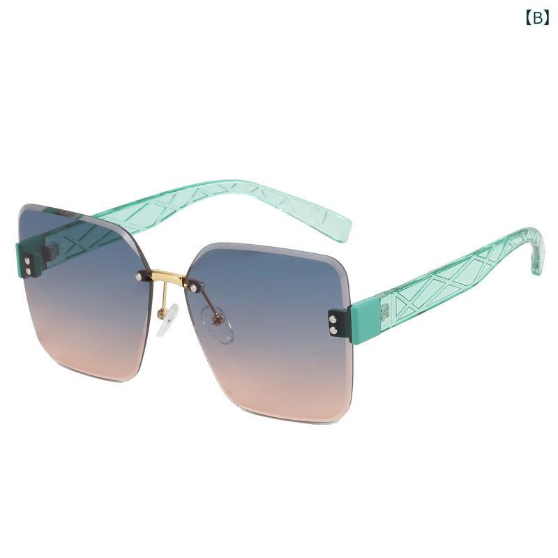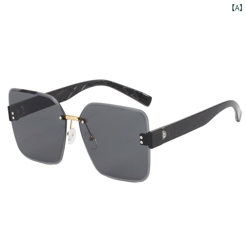 サングラス レディース UV400 紫外線カット 小顔効果 リムレス ビッグフレーム スクエアフレーム 網目模様テンプル 欧米風 ファッション 通勤 ドライブ アウトドア 旅行 レジャー(x2)