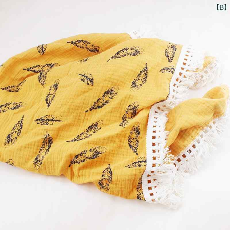 ベビーブランケット 赤ちゃん 子供 幼児 キッズ ふわふわ 優しい肌触り ダブルガーゼ 綿100% 吸水速乾 プリント柄 フリンジ おくるみ バスタオル お昼寝ケット ベビーカーカバー オールシーズン 多機能 大判 安心A類(x2)