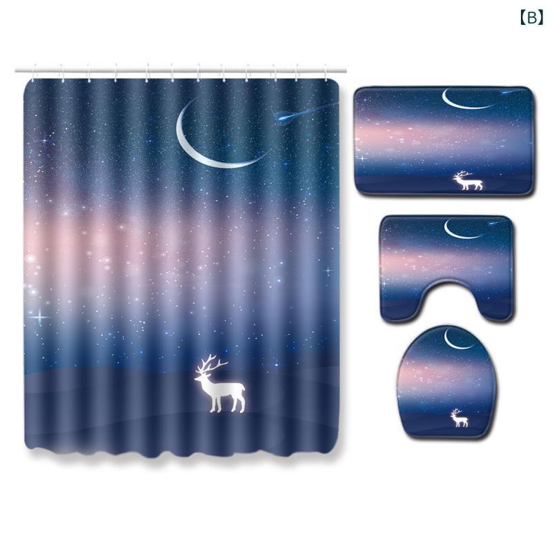 シャワーカーテン バスマット トイレマット フロアマット クリスマス 4点セット ウォッシャブル ポリエステル モダン 長方形 バスルーム 寝室 子供部屋