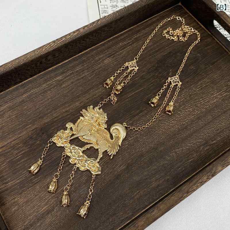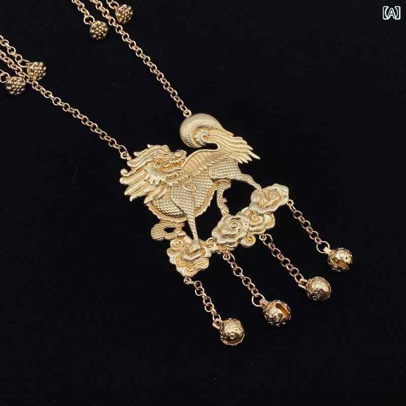 ネックレス 麒麟モチーフ 和風 獅子の鈴 銅鈴 瓔珞 宮廷風 エレガント ミディアム丈 鉄製 清楚 かわいい チャイナ風 漢服アクセサリー ペンダント