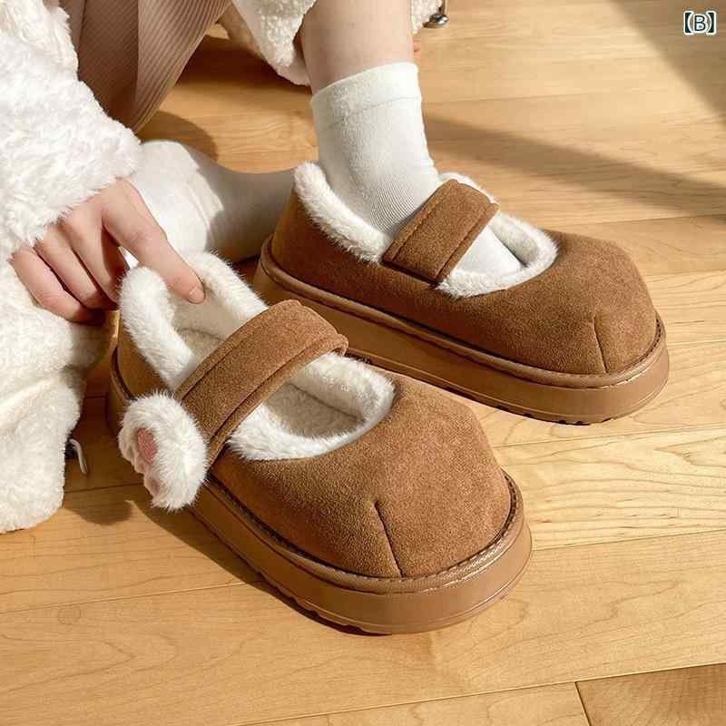 ルームシューズ レディース 秋冬 かわいい 猫モチーフ マジックテープ 部屋着 屋外兼用 快適 ソフト 保温 裏ボア ファー スリッパ 滑り止め 厚底 EVAソール キャラクター デイリーユース