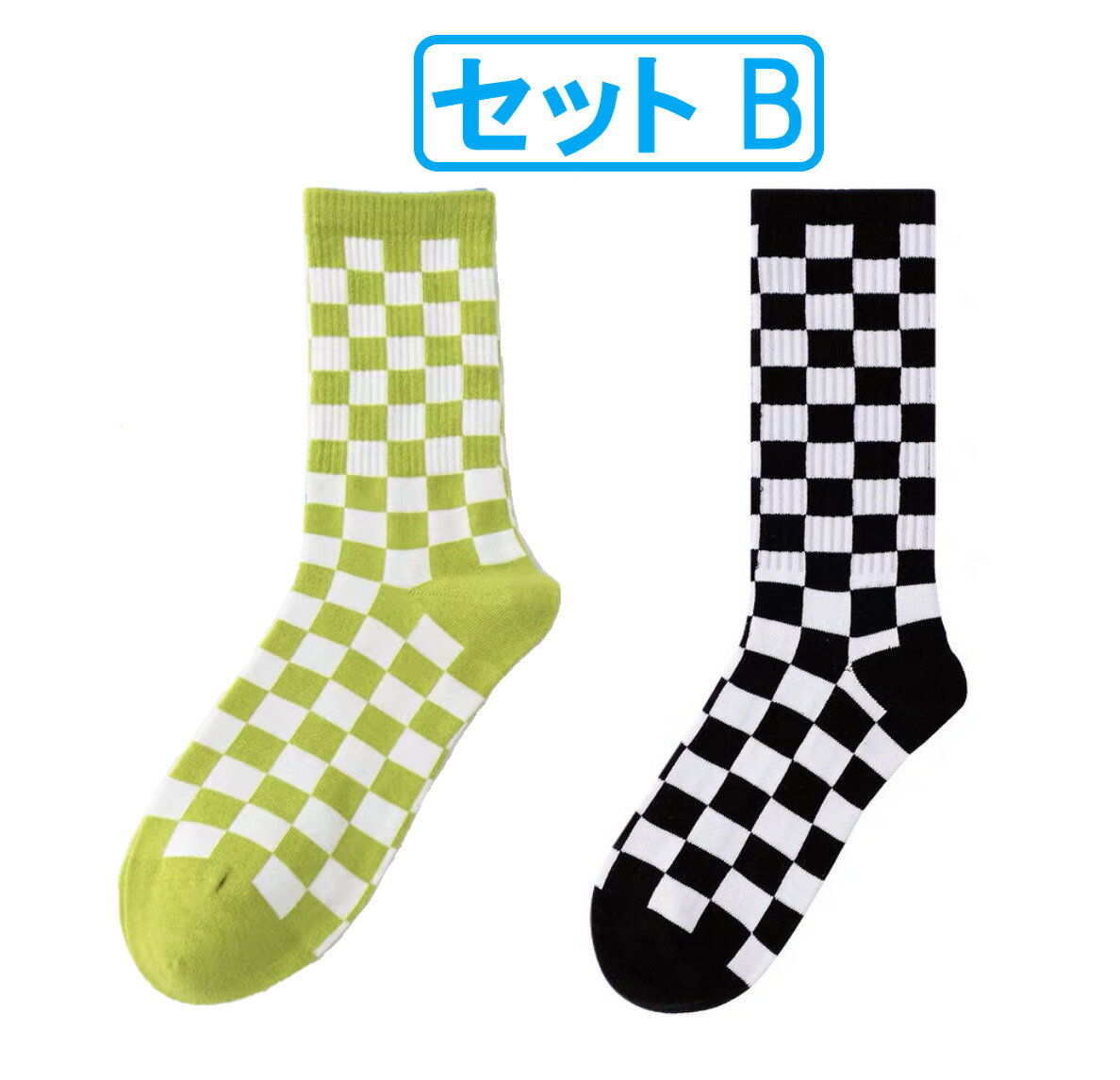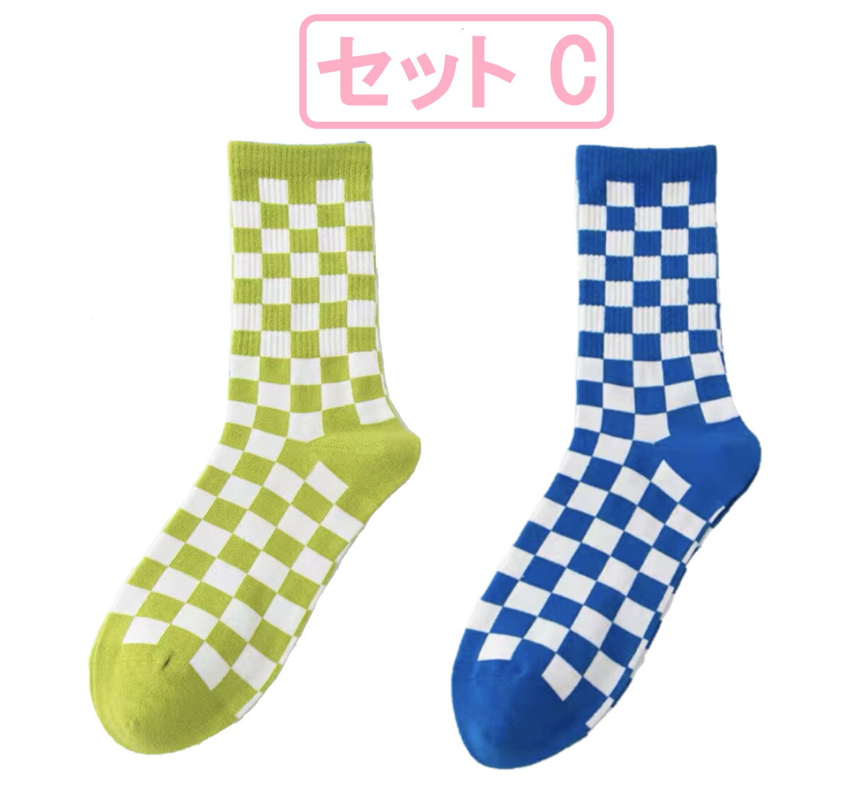 年末スーパーセール 各デザイン2足セット グリッドパターン ファッショナブル カジュアル なキュートソックス 女性 男性 靴下2足セット 1パターンずつ二足セット SOCK 秋冬 可愛い お洒落 ユニセックス 靴下送料無料