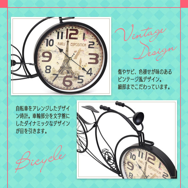 置時計 レトロでおしゃれなビンテージデザインの置時計 ビンテージ風置時計 自転車デザイン 95cm