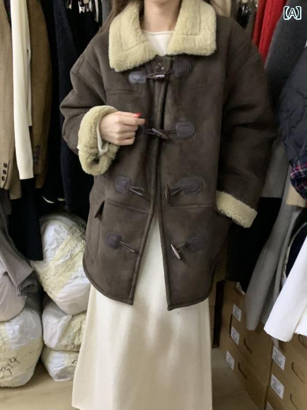 ジャケット レディース ボアブルゾン フェイクムートン 秋冬 ゆったり 厚手 あったか 防寒 カジュアル かわいい 立ち襟 襟付き 韓国風 ドロップショルダー 90%ポリエステル