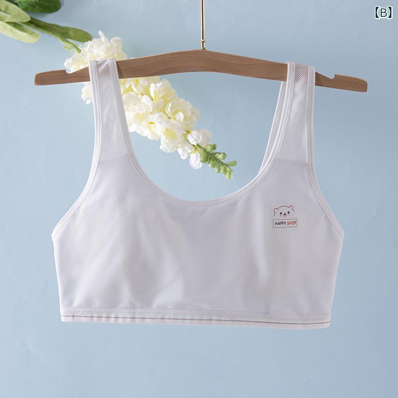 ブラジャー ガールズ ジュニア スポーツブラ スポブラ ノンワイヤー 薄手 75A 80A 85A 綿混 全罩杯 白 浅ブルー 浅肌色 中学生 高校生 初めてのブラ ファーストブラ 9歳 10歳 11歳 12歳 13歳