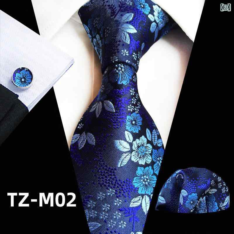 ネクタイ 男性用 ポケットチーフ カフス 3点セット ポリエステル 花柄 ジャカード織