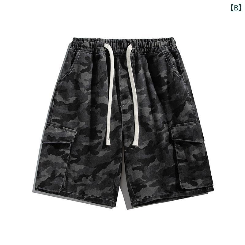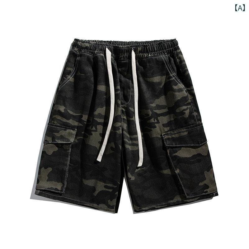 ハーフパンツ メンズ デニム 迷彩 カーゴパンツ ゆったり ストレート 薄手 ミリタリー 5分丈 短パン カモフラ柄 カジュアル アメカジ