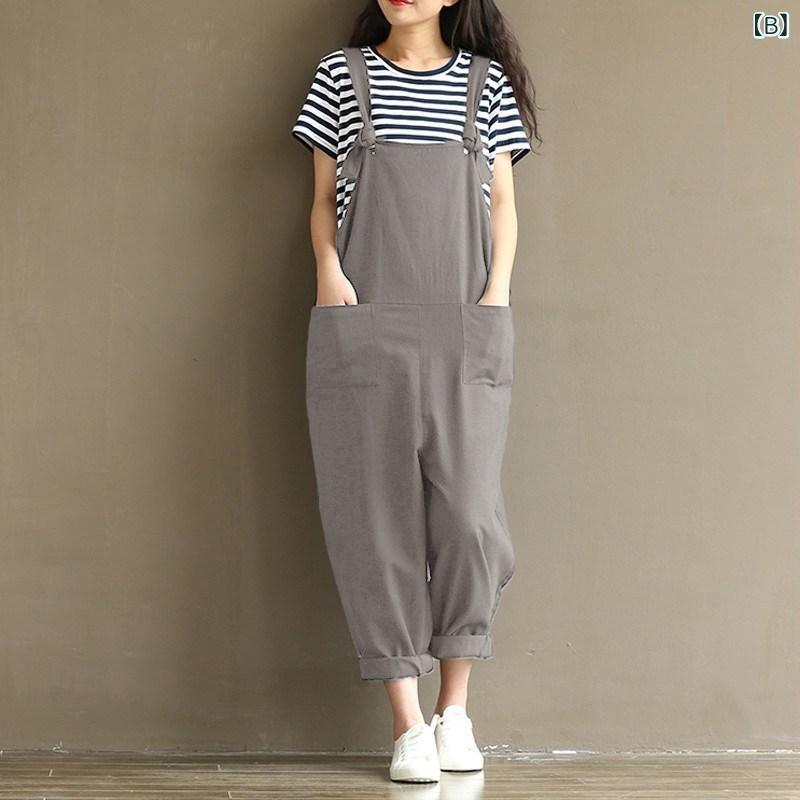 パンツ レディース 大きいサイズ 文芸復古風 サロペットパンツ テーパードパンツ 綿麻風 快適 普段使い カーキ色 グレー 緑色 黒色 深青色 コーヒー色 赤色