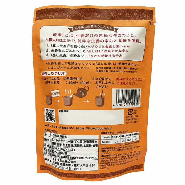 イトク食品 純辛蒸し生姜湯 4袋入×3個セット 蒸し生姜 乾燥 風邪予防 冷え性 花粉症 整腸作用 国産 しょうが湯 安眠 温かい 3個セット 高知産生姜使用 体質改善 温活 健康