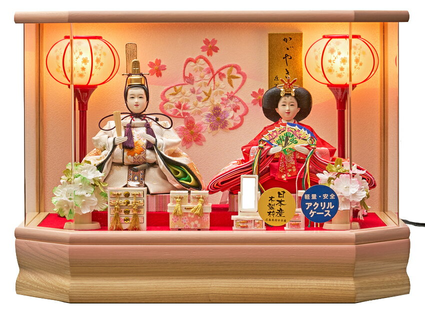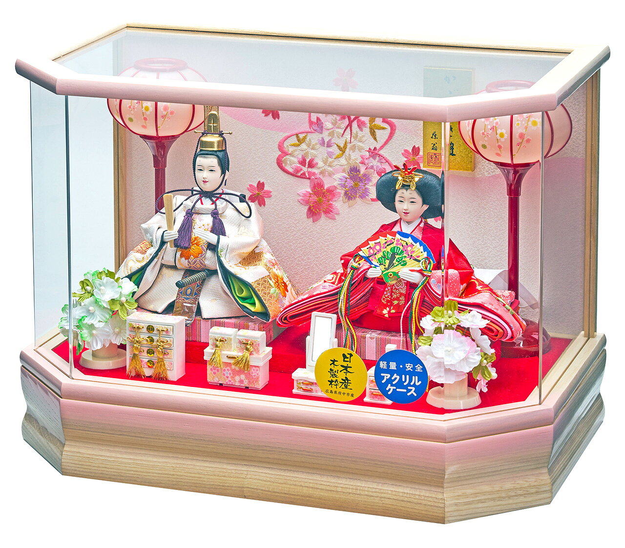 雛人形 ひな人形 お雛様 おひなさま かわいい 手作り 2025年 新作 秀光 限定品 送料無料 コンパクト ミニ 初節句 ひな祭り 二人 2人 親王 六角アクリルケース 桜 男雛 女雛 買得 お得 人気 ランキング P87314