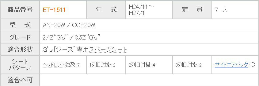 【年式/型式】H24/11〜H27/1 ※適合についてはお問い合わせください。/ANH20W GGH20W/2.4ZG's/3.5ZG's 7人