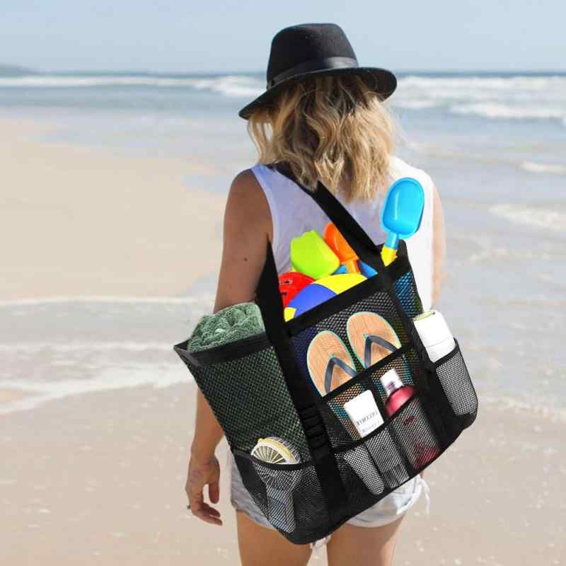 プールバッグ 大容量 メッシュバッグ 軽量 ビーチバッグ 大人 温泉バッグ スパバッグ ビーチ ジム 旅行 バッグ 収納袋 手提げカバン 折り畳み可能 手提げバッグ