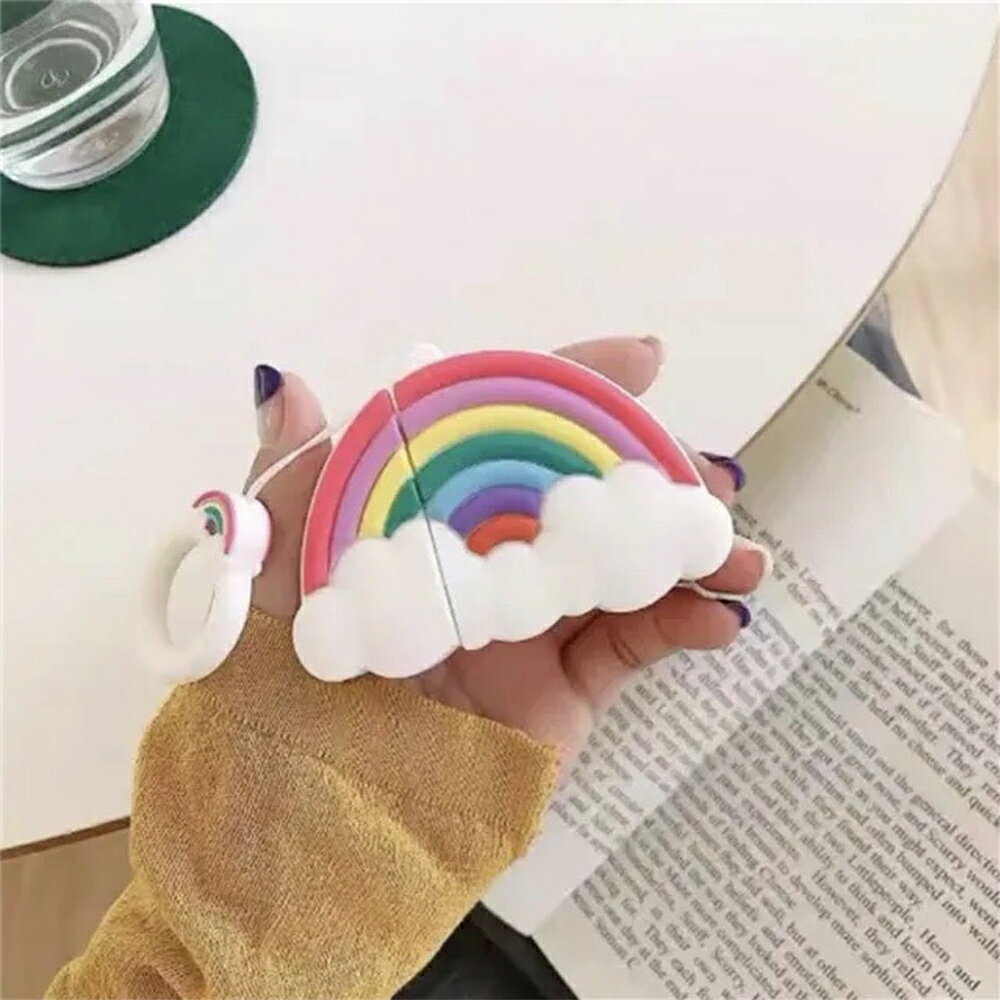 AirPods 1 / 2 / 3 / AirPods Pro 1 / 2 エアーポッズ プロ 虹 レインボー リング付きシリコン カバー ケース おしゃれ 傷つき防止 紛失防止 軽量 ワイヤレス充電 送料無料
